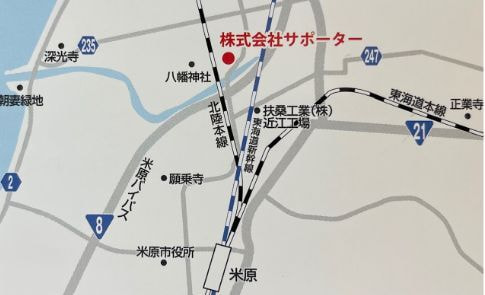 HOME | 会社概要 会社概要 名称 株式会社 サポーター 所在地 〒521-0063 滋賀県米原市飯570 事業内容 保険代理業 営業時間 9:00〜17:00 定休日 土日祝 電話番号 0749-52-1234 FAX番号 0749-50-1865 MAIL info@suporter-ins.co.jp アクセス米原ICより車で10分、JR米原駅より車で5分